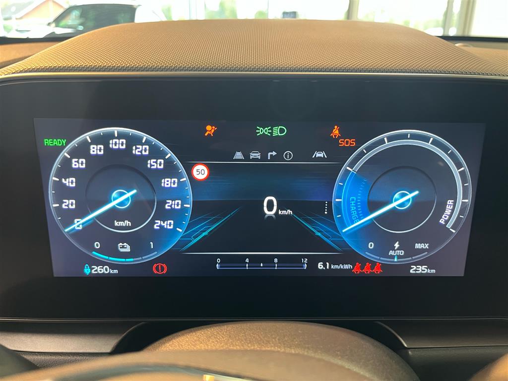 Varmepumpe - Kunstlæderkabine med el-justerbart føresæde - trådløs mobilopladning - BI-LED forlygter - Aktiv blindvinkelassistent (BCA) - el-foldebare sidespejle med varme - LED tågeforlygter - parkeringssensor for og bag - bakkamera - Variabel baggagerumsbund - ambiente lyspakke - regnsensor - Udvidet motorvejsassistent (HDA) med adaptiv fartpilot - Kabinedetaljer m. Chopped Carbon look - Advarsel for bagvedkrydsende trafik (RCCW) - nøglefri adgang og start - varme i rat og forsæder - 10,25” touchskærm m. navigation** & Kia Connect - Apple Carplay/Android Auto - Navigationsbaseret opladningsforberedelse af batteri - Op til 460 km på en opladning, høj indstigning og utrolig rummelig bil. o.m.a.