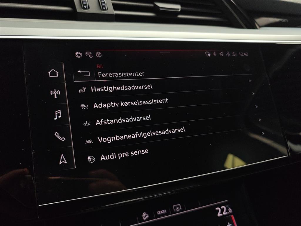 12V udtag, Android Auto, Apple CarPlay, Aut. nedblændeligt bakspejl, Automatgear, Bakkamera, Bluetooth, Digital instrumentering, Elektrisk bagklap, El-foldbare spejle m. varme, El-justerbar lændestøtte, El-håndbremse, Elruder for/bag, Fartpilot adaptiv, Fjernbetjent centrallås, Håndfri telefon, Infocenter, Klimaanlæg 4-zoner, Kørecomputer, Multifunktionsrat, Musikstreaming via bluetooth, Navigation, Parkeringssensor for/bag, Regnsensor, Sædevarme for, Servo, Udvendig temperaturmåler, USB stik, Varmepumpe, 20" Alufælge, Fuld LED forlygter, Hvide blinklys, LED kørelys, LED baglygter, Indfarvede kofangere, Metallak, Tagræling, Armlæn, Armlæn bag, Højdejusterbart førersæde, Højdejusterbart passagersæde, Kopholder, Læderrat, Multijusterbart rat, Splitbagsæde, 6 Airbags, ABS, Antispin, Auto hold, Automatisk nødbremsesystem, Automatisk nødopkald, Dæktrykssensor, ESP, Isofix, Lyssensor, Selealarm, Selestrammer, Skiltegenkendelse, Startspærre, 360° kamera, Luft-undervogn, Ikke ryger, Service overholdt, Nøglefri start, Lygtevasker, Mørktonede ruder bag, Stofindtræk