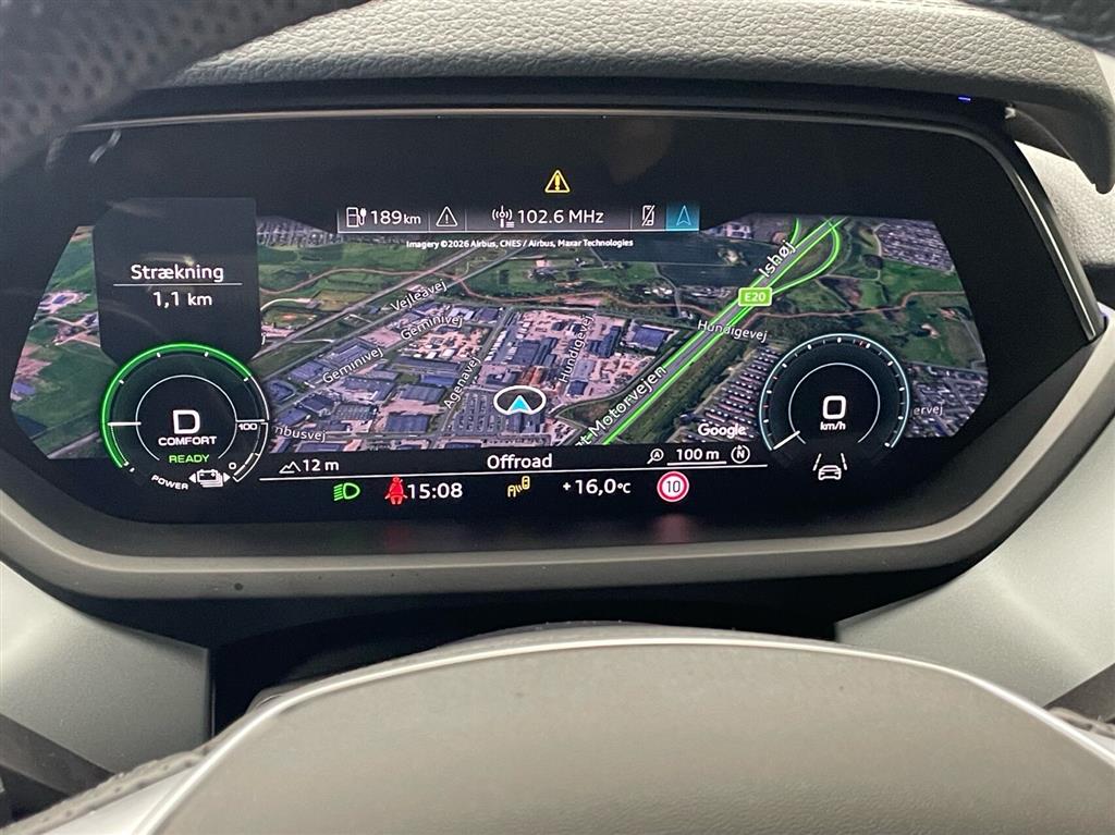 Hjemmeladning: 11 kw/3 faser (ca. 9 timer)