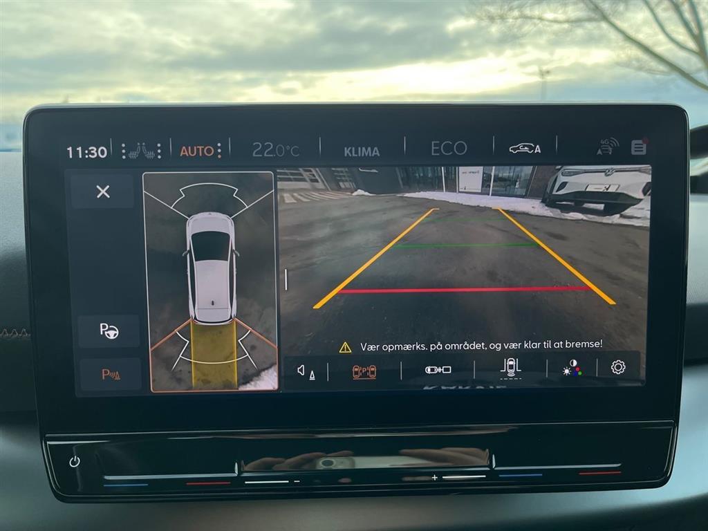- Bakkamera og parkeringssensorer for og bag