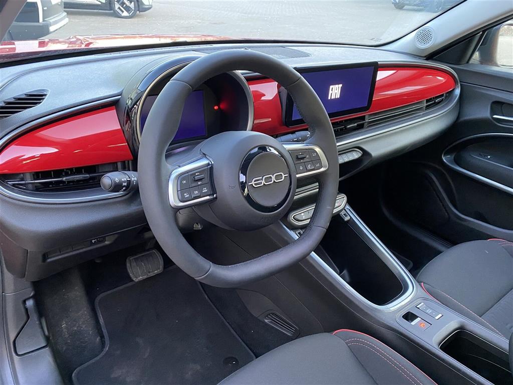 BILLIG EL BIL MED MASSER AF CHARME Fiat 600e RED Automatisk Klimanlæg P-sensor bag Fartpilot Apple CarPlay Læderrat Android Auto