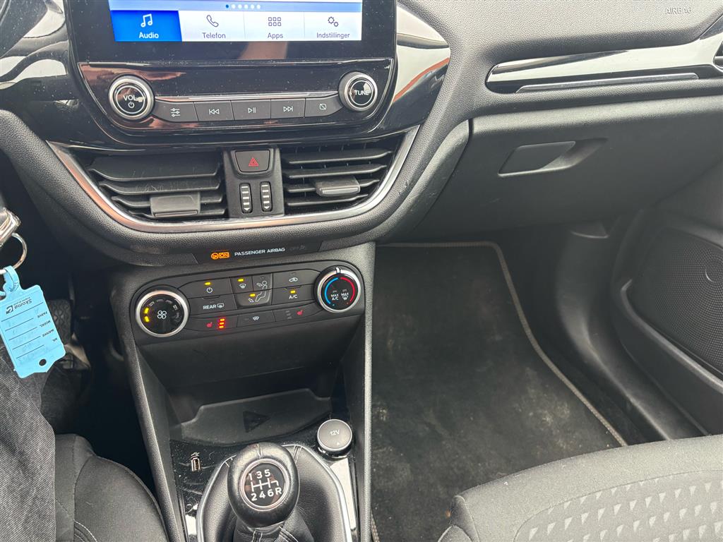 Fiestaen er indregistreret i 2019 og er af typen Hatch med 5 døre. Den har en rummelig kabine, der byder på komfortabelt udstyr som aircondition, sædevarme foran og et læderrat. Den opvarmede forrude er perfekt til de kolde morgener, mens Android Auto og Apple CarPlay giver dig nem adgang til din yndlingsmusik og navigation. Desuden har bilen håndfri telefonfunktion, så du kan holde fokus på vejen.