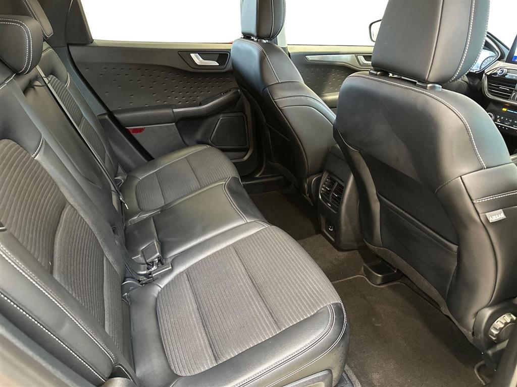 Her får du en veludstyret og elegant Ford Kuga Plug-in Hybrid, der kombinerer stærk benzinmotor og elmotor for både komfortabel og økonomisk kørsel. Bilen er flot udført i den eksklusive Agathe Black metallak, som giver et stilrent og moderne udtryk.