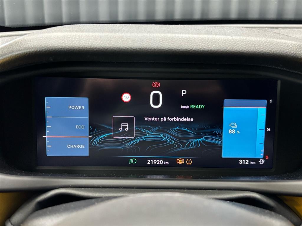 Hjemmeladning: 11 kw/3 faser (ca. 5,5 timer)
