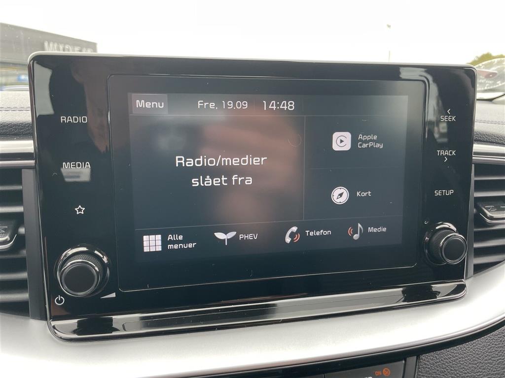 Ceed PHEV SW Prestige DCT - 16” Alufælge, Touchskærm, Apple CarPlay, Android Auto, Bakkamera m. dynamisk guide, 2 Zone Klimaanlæg, Adaptiv fartpilot, Bluetooth, DAB+ Radio, High Beam Assist (automatisk styring af kort & langt lys), Auto Light Control, Elektronisk Parkeringsbremse, Parkeringssensor bag, 4-vejs justérbart læderrat m. varme, Sædevarme, Skydbart Armlæn, Armlæn bag m. kopholder, Regnsensor, Automatisk nedblændeligt bakspejl, LED for- & baglygter, Tonede ruder, Ratbetjent Radio, AUX- & USB-indgang, 4.2” instrumentering, El-rudehejs for & bag, El-indklappelige spejle m. varme & LED blink, Højdejusterbart førersæde, Højdejusterbart passagersæde, Splitbagsæde, Luftdyser til bagved, Multifunktionel Smart Key, Kørecomputer, Kopholder, High Gloss detaljer indvendigt, Tagrælinger, AEB (Automatisk Nødbremse), DDA (træthedsregistrering), Haptic Steering Wheel Warning, Vejbane-assistent, Vinterhjul medfølger