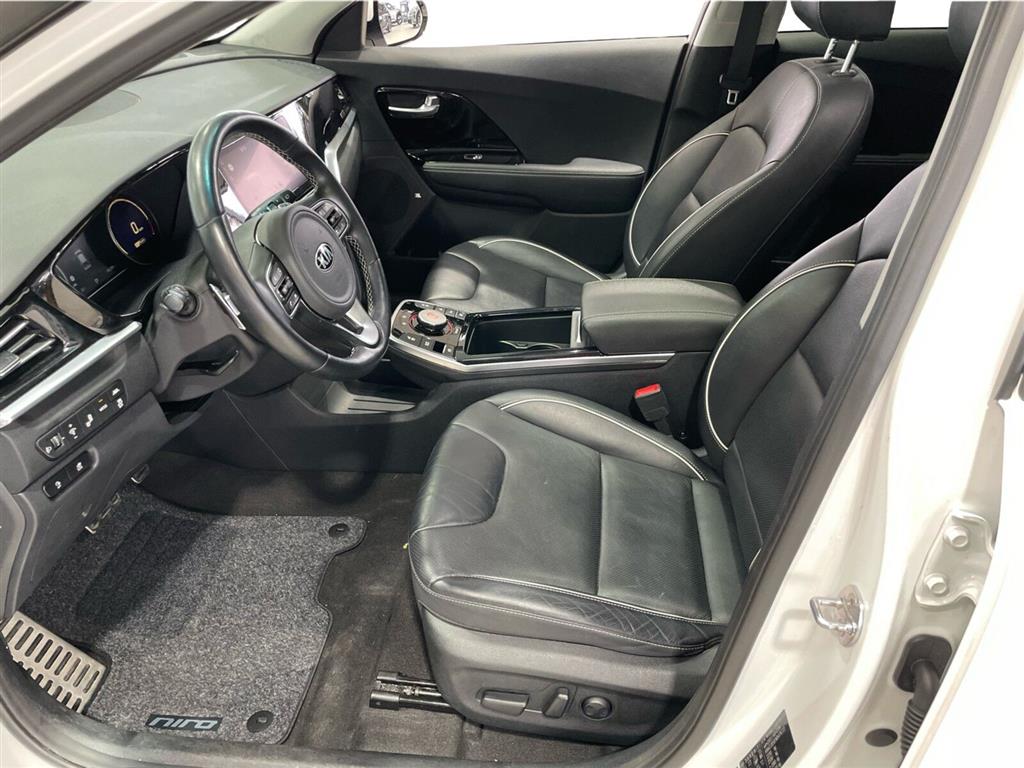 Læderkabine m. ventilation i forsæder, e-Niro MY21 64kWh Advance : 3-faset opladning, 17” Alufælge, Touchskærm, Ratbetjent DAB+ radio, Bluetooth, Håndfri telefoni, Musikstreaming via Bluetooth, Apple CarPlay, Android Auto, Navigation, Kia Connect (app styring) USB/AUX-indgang, Bakkamera m. dynamisk guide, Fuldautomatisk klimaanlæg, Varmepumpe, Auto Light Control, Bi-LED forlygter, LED baglygter, LED kørelys, Automatisk fjernlys kontrol, Parkeringssensor for & bag, Bluetooth, Sædevarme for & bag, 4-vejs justérbart læderrat m. varme, Adaptiv fartpilot, Del-kunstlæder kabine, El-ruder for & bag, El-indklappelige sidespejle m. varme & LED blink, Højdejustérbare forsæder, Armlæn for & bag, Luftdyser bagved, Trådløs mobilopladning (hvis mobil er kompatibel), Regnsensor, Automatisk nedblændeligt bakspejl, Privacy Glass (mørktonede ruder bag), Multifunktionel Smart Key, Tagrælinger, Hajfinne antenne, Alu-pedaler, Alu indstigningslister, Elektronisk håndbremse, ABS, ESP, 7 Airbags, Isofix, HAC (Bakkestartassist), LFA (Vejbaneassistent) AEB (Auto Emergency Break) DAA (Driver Attention Alert), Blindvinkelsassistent (Blind Spot Detection), El-soltag, El-justerbart førersæde m. memory, JBL lydanlæg m. 8 højtalere & forstærker, Metallak