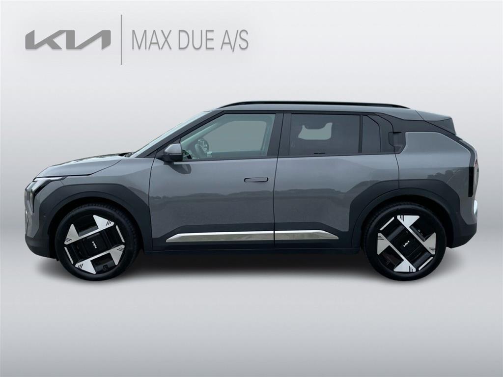 Varmepumpe, Batterivarmer, Pre-conditionering til DC-ladning af batteri, 12,3” Touchskærm, Navigation, Kia Connect (app styring), Ratbetjent DAB+/FM radio, Harman Kardon lydanlæg, USB-porte, 12V strømudtag, Trådløs Apple CarPlay, Trådløs Android Auto, Bluetooth, Håndfri telefon, Musikstreaming via Bluetooth, Trådløs mobilopladning m. kompatibel mobil, Fuldt digital 12,3” instrumentering, Bakkamera m. dynamisk guide, OTA (Over The Air softwareopdatering), LED kørelys, Bi-LED forlygter, LED baglygter, Automatisk fjernlysassistent, Komfortblink, Dynamisk velkomst lys, 2-zone klimaanlæg, Touchskærm til styring af klimaanlæg, Fjernstyret opvarmning af kabine, Højvolts kabinevarmer (PTC), Ventilation til bagsædepassagerer, Stofindlæg på instrumentbord, Stof på armlæn i dørene, Kunstlæderkabine, Ambient light, El-justérbart førersæde m. el-justérbar lændestøtte, Højdejustérbart passagersæde, Sædevarme for, Armlæn, Længdejustérbar midterkonsol, Kopholder, 60:40 Splitbagsæde, Varme i bagsæder, Armlæn bag, Kopholder bag, 4-vejs justérbart kunstlæderrat m. varme, Paddle shifters (til regenererings niveau), Variabel bagagerumsbund, Multifunktion Smart Key, Digital Key, Elektrisk bagklap, El-rudehejs for & bag, El-indklappelige sidespejle m. varme & LED blink, Støjdæmpende forrude, Aut. nedblændeligt bakspejl, Drive Mode Select, Adaptiv fartpilot, Regnsensor, Mørktonede ruder bag, 25 liter frunk m. lys, Parkeringssensor for & bag, Indfarvede dørgreb m. flushbetjening, Blanksorte detaljer på sidespejle, Skærmkanter og dørpaneler i blanksort, Tagrælinger, 19” Alufælge (215/50R19), 7 Airbags, ABS, ESC, Isofix, Advarsel for glemt bagsædepassager, Bakkestartassist, Dæktryksovervågning, Elektrisk P-bremse, E-call, Intelligent skiltegenkendelse m. hastighedsassistent, Udvidet fører-træthedsregistrering, Udvidet vognbane-/motorvejs-assistent m. Hands-On-Sensor, Multikollisionsbremse, Automatisk nødbremse m. registrering af fodgænger, cyklistregistrering, venstresvingende modkørende og krydsende trafik, Aktiv blindvinkelassistent, Assistent for bagved krydsende trafik, Advarsel for sikker udstigning , El-soltag, Head-up display, Metallak, EV3 Parkeringspakke - Fjernbetjent parkeringsassistent, 360gr. kamera, Blindvinkelkamera, Aktiv parkeringskollisionsassistent