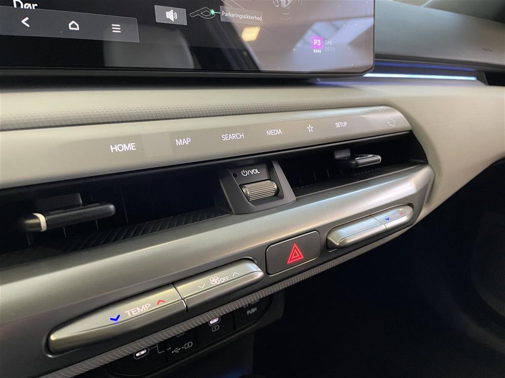 Varmepumpe, Batterivarmer, Pre-conditionering til DC-ladning af batteri, 11 kW onboard charger uden V2X, 12,3” Touchskærm, Navigation, Kia Connect (app styring), Ratbetjent DAB+/FM radio, Højtalere i for- & bagdøre, Diskant- & centerhøjtalere, Subwoofer og ekstern forstærker, Harman Kardon lydanlæg, USB-porte, Trådløs Apple CarPlay, Trådløs Android Auto, Bluetooth, Håndfri telefon, Musikstreaming via Bluetooth, Trådløs mobilopladning, USB port, Fuldt digital 12,3” instrumentering, Bakkamera m. dynamisk guide, 360 graders kamera, OTA (Over The Air softwareopdatering), Auto Light Control, LED kørelys, BI-LED forlygter m. adaptiv styring af fjernlys, LED baglygter, Automatisk fjernlysassistent, Komfortblink, Dynamisk Follow-Me-Home lysanimation, 2-zone klimaanlæg, Touchskærm til styring af klimaanlæg, Fjernstyret opvarmning af kabine, Højvolts kabinevarmer (PTC), Ambient belysning -niveau 2, Kunstlædersæder, Premium RELAXION forsæder, El-justérbare forsæder m. varme, ventilation & el-justérbar lændestøtte, El-justérbart førersæde m. hukommelse, Lommer bag på forsæder, Justérbart Armlæn m. opbevaring mellem forsæder, Kopholder, 60:40 Splitbagsæde m. varme, Luftdyser bag, Armlæn bag, Kopholder bag, 4-vejs justérbart GT-Line kunstlæderrat m. varme, Paddle shifters (til regenererings niveau), Variabel bagagerumsbund, Digital Key, Multifunktion Smart Key, Fjernbetjent parkeringsassistent, Elektrisk gearvælger, El-rudehejs for & bag, Indfarvede el-indklappelige sidespejle m. varme & LED blink, Støjdæmpende forrude, Aut. nedblændeligt bakspejl, Lys ved make-up spejle, Adaptiv fartpilot, Manuel hastighedsbegrænser, Regnsensor, Automatisk afdugning af forrude, Parkeringssensor for & bag, Indfarvede dørgreb m. flushbetjening (auto), Elektrisk bagklap, Skærmkanter og dørpaneler i blanksort, Mørktonede ruder bag, 19” Alufælge (215/50R19), Alu indstigningslister, Alupedaler, Advarsel for påfyldning af sprinklervæske, Airbags, ABS, ESC, Isofix, Advarsel for glemt bagsædepassager, Elektrisk aktiveret børnelås, Bakkestartassist, Dæktryksovervågning, Elektrisk P-bremse, E-call, Intelligent skiltegenkendelse m. hastighedsassistent, Udvidet fører-træthedsregistrering, Udvidet vognbane-/motorvejs-assistent m. Hands-On-Sensor, Udvidet motorvejsassistent, Multikollisionsbremse, Automatisk nødbremse m. registrering af fodgænger, cyklistregistrering, venstresvingende modkørende og krydsende trafik (FCA 2.0), Aktiv parkeringskollisionsassistent bag, Blindvinkel kamera, Aktiv blindvinkelassistent, Assistent for bagved krydsende trafik, Advarsel for sikker udstigning , Metallak