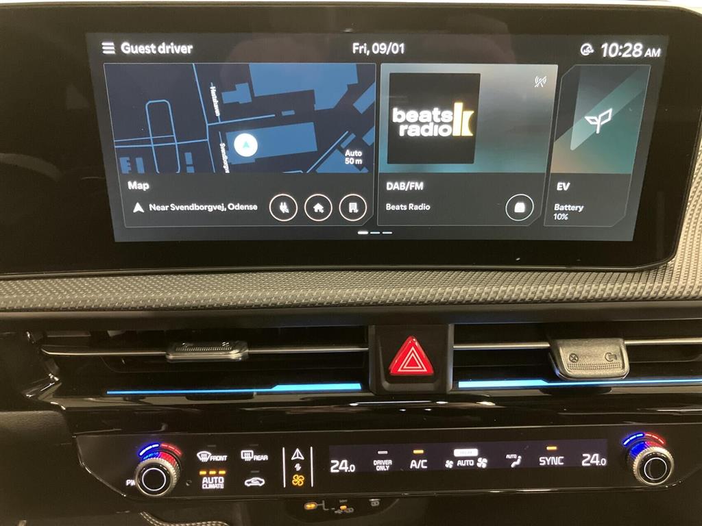 20" Alufælge, Android Auto Wireless, Apple CarPlay Wireless, Aut. nedblændeligt bakspejl, Automatisk lys, Automatisk op-/nedblænding, Bakkamera, Bluetooth, DAB+ radio, Digital instrumentering, El indst. forsæder, El indst. førersæde m. memory, El soltag, Elektrisk bagklap, El-foldbare spejle, El-håndbremse, Elruder for/bag, El-spejle, Fartpilot adaptiv, Fjernbetjent centrallås, Frontkamera, Head-up display, Håndfri telefon, Klimaanlæg 2-zoner, Infocenter, Multifunktionsrat, Musikstreaming via bluetooth, Navigation, Nøglefri døre, Nøglefri start, One pedal drive, Panoramasoltag, Parkeringssensor for/bag, Radio, Regnsensor, Sædevarme for, Sædeventilation, Trådløs mobilopladning, Udvendig temperaturmåler, USB-C, Varmepumpe, Varme i rat, Automatisk fjernlysassistent, DC Hurtiglader, LED baglygter, Mørktonede ruder bag, Tågelygter, Armlæn, Armlæn m. kopholder i bag, Højdejusterbart førersæde, Højdejusterbart passagersæde, Justerbart rat, Læderrat (Kunstlæder), Læderkabine (Kunstlæder), Rat m. varme, Soltag, Splitbagsæde, 360 graders kamera, 3-Faset, Automatisk nødbremsesystem, Alarm, Blindvinkelassistent, Isofix, Selealarm, Træthedsregistrering, Skiltegenkendelse, Vejbaneassistent