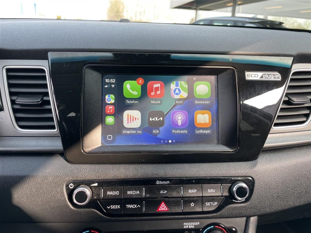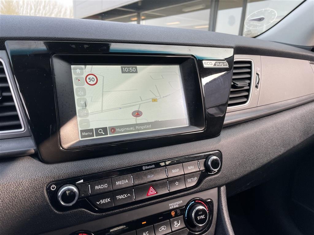 Niro Plug-In Comfort – Touchskærm, Ratbetjent radio, USB, Bluetooth, Håndfri telefoni, Musikstreaming via Bluetooth, Navigation, Apple CarPlay, Android Auto, Bakkamera m. dynamisk guide, Auto, Shark fin antenne, 16” Alufælge, 2-zone klimaanlæg, Adaptiv fartpilot (holder selv afstand til forankørende), Regnsensor, Aut. nedblændeligt bakspejl, Parkeringssensor bag, Auto Light Control, LED-kørelys, LED baglygter, Tågelygter, Højdejustérbart førersæde, Højdejustérbart passagersæde, Sædevarme, Armlæn, Kopholder, Splitbagsæde, Armlæn bag, 4-vejs justérbart læderrat m. varme, Tonede ruder, Tagrælinger, Elrudehejs for & bag, El-indklappelige spejle m. varme & LED-blink, Fjernbetjent centrallås, Kørecomputer, Airbags, ABS, ESP, Alarm, Antispin, Isofix, HAC (Hill Assist control), KLAS (Lane Keep Assist System) AEC (Auto Emergency Break) DAA (Driver Attention Allert), Anhængertræk aftageligt, Vinterhjul medfølger, Tidligere undervognsbehandlet