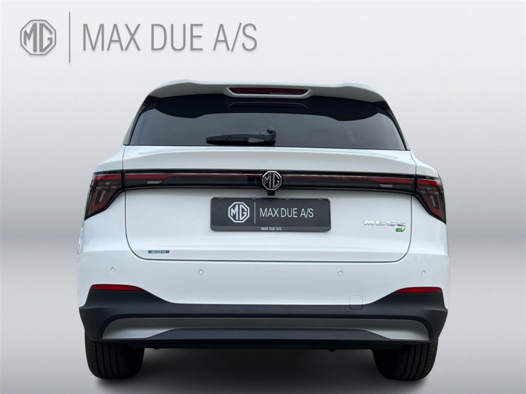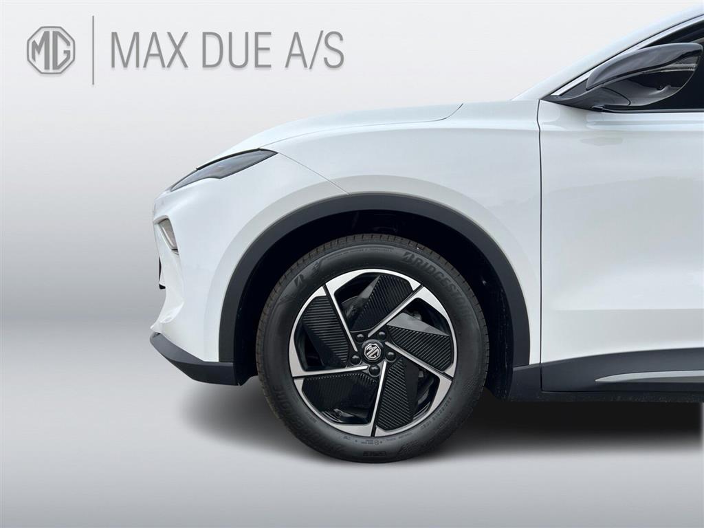 Batterivarmer, Varmepumpe, Adaptiv Fartpilot, 18" Alufælge m. aero-hjulkapsel, Touchskærm, Ratbetjent DAB radio, Apple CarPlay, Android Auto, Bluetooth, Håndfri mobiltelefon, Musikstreaming via Bluetooth, 6 højtalere, iSMART (MG app-styring), Navigation, Bakkamera m. dynamisk guide, 360gr. Round View Monitor, USB, USB C, Trådløs mobilopladning, V2L (Vehicle to load) afladning, KERS (styring af regenerering), One Pedal, MG Pilot Custom funktion, Auto Light Control, LED kørelys, LED forlygter, Intelligent styring af fjernlys, LED baglygter, Del-kunstlæder kabine, 6-vejs el-justérbart førersæde m. manuel lændestøtte, 4-vejs justérbart passagersæde, Sædevarme for & bag, Armlæn for & bag, Kopholder, 60:40 Splitbagsæde, 4-vejs læderrat m. varme, Fuldautomatisk klimaanlæg, Elektrisk bagklap, El-rudehejs for & bag, El-indklappelige sidespejle m. varme, Parkeringssensor bag, Elektrisk håndbremse, Nøglefri betjening, Nøglefri lås, Nøglefri start, Fjernbetjent centrallås, Kørecomputer, Servo, Udvendig temperaturmåler, Regnsensor, Mørktonede ruder bag, Hækspoiler, Tagrælinger, Indfarvede kofangere, 7 Airbags, Alarm, ABS, EBD, ESP, Blindvinkelovervågning, Isofix, Selealarm, Auto Hold, Bakkestartassistent, Kø-assistent, Aktiv vognbaneassistent, Vognbaneskiftassistent, Advarsel v. vognbaneskift, Fastholdelse af vognbane, Intelligent hastighedsassistent m. skiltegenkendelse, Antispin, Advarsel om kollision for- el. bagfra, Aktiv træthedsovervågning, Advarsel ved krydsende trafik bag, Advarsel om sikker udstigning, DriveMode Select, Automatisk nødopkald, Automatisk dæktryksovervågning, Automatisk aktiv nødbremsesystem, Nødbremseassistent , Farvetillæg