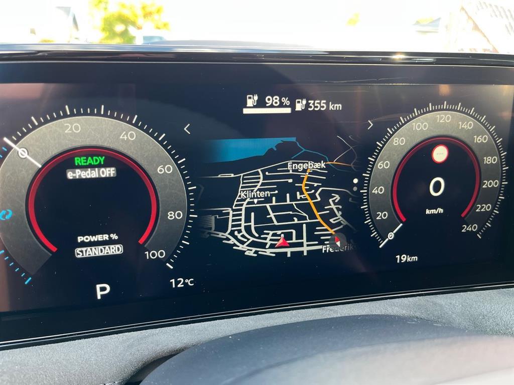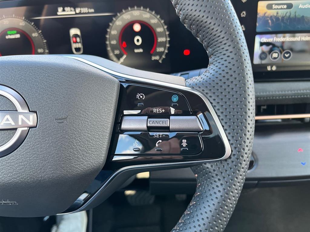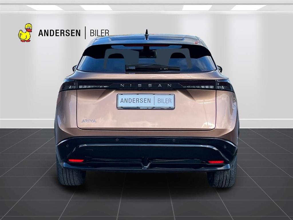 2 zone, Klimaanlæg, Automatgear, Læderrat, Integreret navigation, Apple carplay og android auto til håndfri tlf betjening og afspilning af ens egen navigaiton oven i den fabriksmonterede, Org Ariya 19" alufælge, Aktiv fartpilot, som kan holde hastigheden til forakørende mv, 360 graders bak-kamera, Eletkrisk bagklap som kan køre op og ned og åbnes tillige ved at sparke ind under bilen med foden hvis du kommer med alle dine indkøbsvarer, Board-computer, Digital instrumentering, Tagspoiler, Hajfinneantenne, ABS, ESP, Airbags, Dobbelt bagagerumsbund med ruminddeler, E-pedal, 2 handskerum, Stofindtræk, El-justerbart fører og passasersæde med memory, Veloursæder, Head up display, El-justerbar midterkonsol, El-justerbart midter hanskerum, Parkeringspakke, Panorama glastag der kan åbnes, Nøglefri lås, Varme i forruden, 214 HK, 22 kW lader, så kan lade med 3 faser ved hjemmeladning, 130 KW lynlader, så kan lade 20-80% på ca 30 min mv