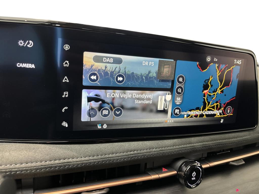 3-faset ladning, 19" Alufælge, DC Hurtiglader, Fuld LED forlygter, LED baglygter, LED kørelys, LED positionslys, Metallak, Mørktonede ruder bag, Tågelygter for/bag, Alcantara , Armlæn, Armlæn m. kopholder i bag, Bagagerumsdækken, Dellæder kabine, Delvis alcantara-kabine, El-justerbart førersæde med memory, Højdejusterbart førersæde, Højdejusterbart passagersæde, Kopholder, Læderrat, Splitbagsæde, Virtuelt bakspejl, Android Auto Wireless, Apple CarPlay Wireless, Aut. nedblændeligt bakspejl, Automatisk lys, Bakkamera, Bluetooth, DAB radio, Digital instrumentering, El soltag, Elektrisk bagklap, El-foldbare spejle, El-håndbremse, El-justerbar lændestøtte, El-justerbart passagersæde, Elruder for/bag, Fartbegrænser, Fartpilot adaptiv, Fjernbetjent centrallås, Frontkamera, Infocenter, Klimaanlæg 2-zoner, Kørecomputer, Multifunktionsrat, Musikstreaming via bluetooth, Navigation, Nøglefri døre, Nøglefri start, Panoramaglastag, Parkeringssensor for/bag, Servo, Sædevarme for/bag, Trådløs mobilopladning, Udvendig temperaturmåler, Varme i bagruden, Varme i forruden, Varme i rat, El-justerbart rat, Sædeventilation, ABS, Antispin, Automatisk nødbremsesystem, Blindvinkelassistent, Isofix, Skiltegenkendelse, Vejbaneassistent, 360 graders kamera