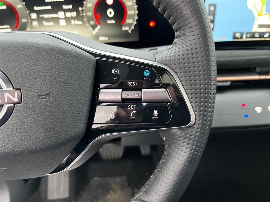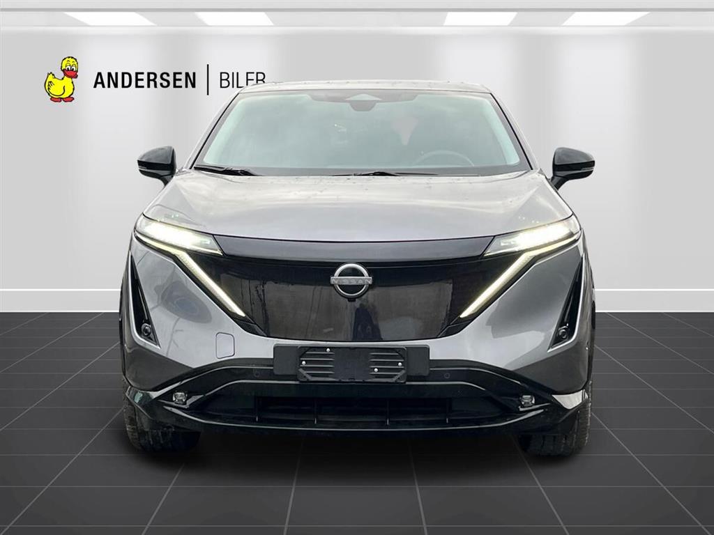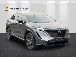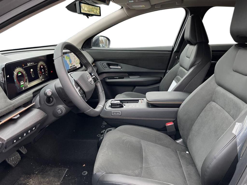 Automatgear, 238 HK El-motor, 20" alufælge, Forhjulstræk, 2 zone klimaanlæg, Varme i forruden, Varme i rat, Varme i for og bagsæder, El-justerbart førersæde, 360 graders bak-kamera, Integreret Nissan Connect navigation, Radio med FM og DAB, Kollisionsradar, Aktiv fartpilot som kan holde hastighed til forankørende, tilpasses vejsklilte rundkørsler mv, De fine 20" Ariya alufælge, Bluetooth håndfri telefon, Digital instrumentering, Board-computer, Sædevarme, Tagrælinger, ABS, ESP, Elektrisk håndbremse, El åbning og lukning af bagklap, Bagklap kan tillige lukkes op ved at sparke ind under bilen... Elektrisk soltag, der kan åbnes, BOSE højttalere, Elektrisk midterkonsol, El-åbning af det ekstra handskerum i midten, Dellæder kabine, Memory på sæder i både fører og passagerside, Varme i bagsædet, Køling i forsæder, Kan delvis parkere selv.