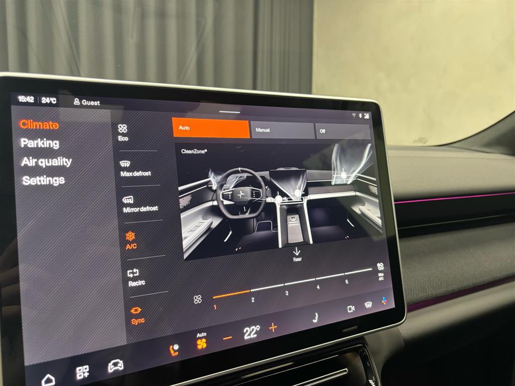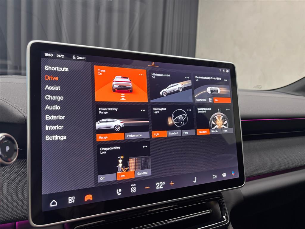 Hjemmeladning: 22 kw/3 faser (ca. 5 timer)