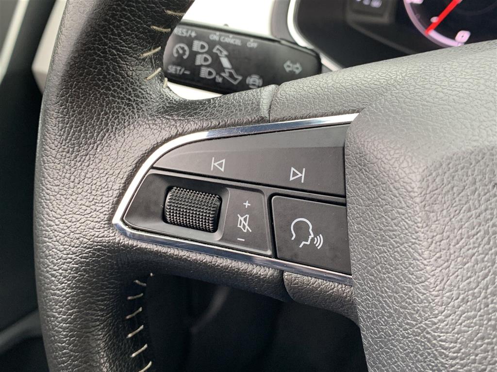 Touchskærm, Ratbetjent Radio, USB stik, Bluetooth, Håndfri telefon, Musikstreaming via bluetooth, Apple CarPlay, Android Auto, Bakkamera, Navigation mulig via Apple CarPlay/Android Auto, Digital instrumentering, Klimaanlæg 2-zoner, Stofindtræk, Højdejusterbart førersæde, Højdejusterbart passagersæde, Sædevarme, Armlæn, Kopholder, Splitbagsæde, 4-vejs justérbart læderrat, Bagagerumsdækken, Mørk loftbeklædning, Auto Light Control, LED kørelys, LED forlygter, Tågelygter, LED baglygter, El-indklappelige spejle m. varme, Blink i sidespejlene, El-rudehejs for & bag, Fartpilot m/limiter, Fjernbetjent centrallås, Infocenter, Kørecomputer, Nøglefri betjening, Nøglefri start, Trykknapstart, Parkeringssensor for, bag & på siderne, Parkeringsassistent, Servo, Udvendig temperaturmåler, DSG - 7-trins automatgear m. dobbeltkobling, 16" Alufælge, Anhængertræk, Indfarvede kofangere, Metallak, Mørktonede ruder bag, Tagrælinger, Airbags, ABS, ESP, Isofix, Startspærre, Automatisk nødbremsesystem, Komplette sommerhjul, Komplette vinterhjul