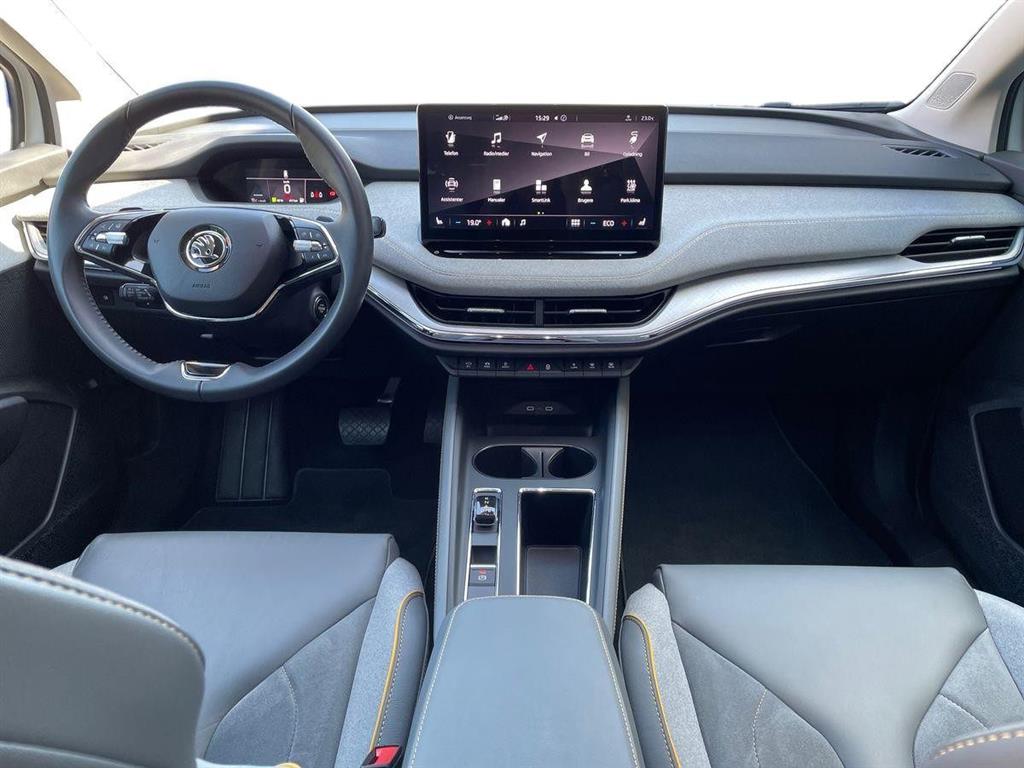 Denne eksklusive Škoda Enyaq fra 2023 kombinerer kraftfuld elektrisk performance, lækker Lounge-indretning og topmoderne assistentsystemer.