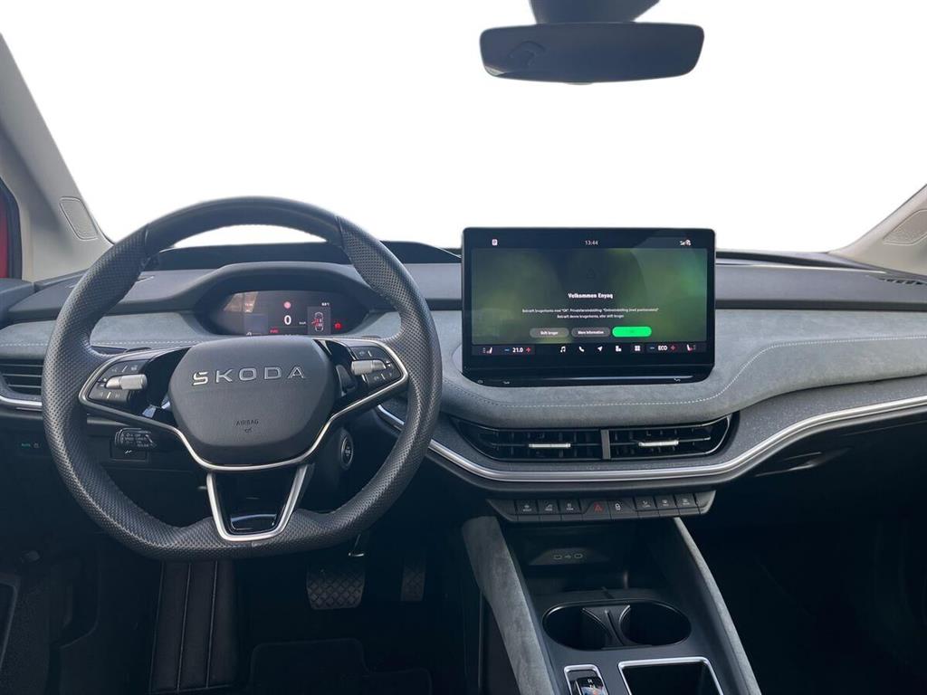 Super lækker Enyaq med en utrolig lækker kabine, blød alcantara nærmest udover det hele! gør kabinen til et sindsygt lækkert sted at være, kombineret med en vanvittig komfort fra El-forsæderne med massage! Lyden er skamn slet ikke noget at klage over med dens CANTON lydanlæg!