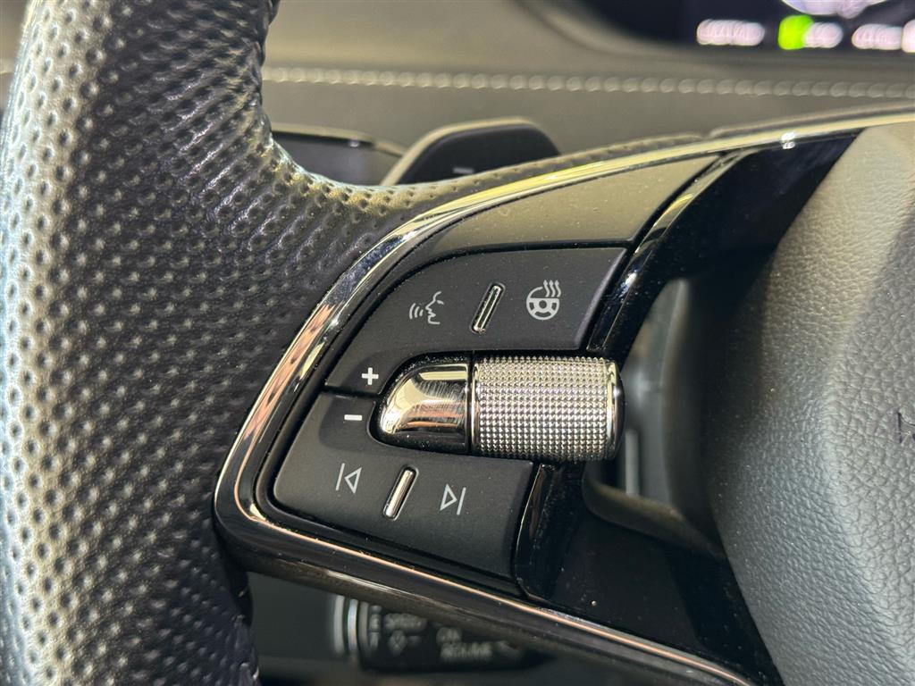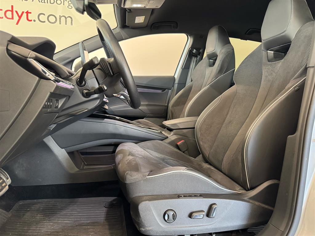 Alcantara-kabine, Ambiente belysning, Armlæn, Armlæn bag, Bagagerumsdækken, Højdejusterbart førersæde, Højdejusterbart passagersæde, Indfarvede kofangere, Justerbar lændestøtte, Justerbart rat, Kopholder, Læderrat, Multijusterbart rat, Mørk loftbeklædning, Rat m. varme, Splitbagsæde, Varme i rat, Aircondition, Android Auto, App integration, Apple CarPlay, Aut. nedblændeligt bakspejl, Automatgear, Automatisk op-/nedblænding, Bakkamera, Bluetooth, Centrallås, DAB radio, Digital instrumentering, El indst. førersæde, El indst. førersæde m. memory, Elektrisk bagklap, El-foldbare spejle, El-foldbare spejle m. varme, El-håndbremse, El-justerbar lændestøtte, Elruder for, Elruder for/bag, El-spejle, El-spejle m/varme, El-spejle med varme, Fartpilot, Fartpilot adaptiv, Fjernbetjent centrallås, Håndfri telefon, Infocenter, Integrerede rullegardiner, Klimaanlæg, Klimaanlæg 2-zoner, Klimaanlæg 3-zoner, Kopholder, Kørecomputer, Mirror link, Multifunktionsrat, Musikstreaming via bluetooth, Navigation, Nøglefri døre, Nøglefri start, Parkeringssensor bag, Parkeringssensor for, Parkeringssensor for/bag, Radio, Regnsensor, Servo, Sportssæder, Stemmebetjening, Sædevarme for, Udvendig temperaturmåler, USB-C tilslutning, ABS, Airbag, Antispin, Auto hold, Automatisk nødbremsesystem, Blindvinkelassistent, Dæktrykssensor, ESP, Fartbegrænser, Hill Assist, Isofix, Lyssensor, Selealarm, Skiltegenkendelse, Startspærre, Træthedsregistrering, Vejbaneassistent, Elektrisk parkeringsbremse, Type-2 ladekabel, 20" Alufælge, Alufælge, Anhængertræk, Anhængertræk svingbart (man.), Fuld LED forlygter, LED baglygter, LED forlygter, LED kørelys, Lygtevasker, Matrix LED forlygter, Metallak, Mørktonede ruder bag, Tonede ruder