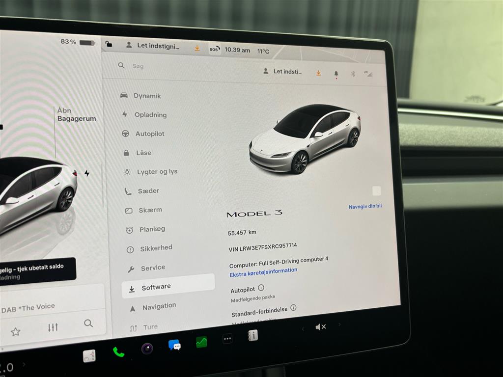 SE HER | På lager, Highland, 60KWh batteri, Køl i forsæder, Varme i rat og for/bagsæder, 8" Touchskærm bagi m. multimedie streaming, Ambiente belysning, Trådløs mobilopladning, Panoramaglastag, Adaptiv fartpilot, Autopilot og meget mere