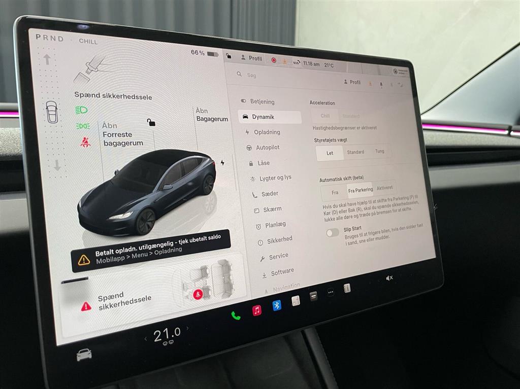 Hjemmeladning: 11 kw (ca. 8 timer)