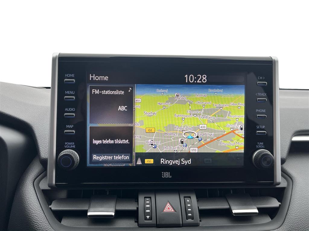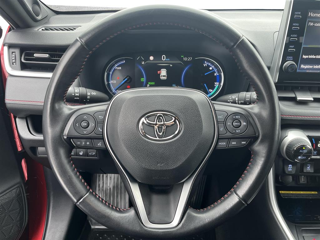 En utrolig lækker RAV4 Plug-in Hybrid, Der har den helt store pakke med JBL lydanlæg og delvis kunstlæderindtræk. Kamera rundt om hele bilen for den helt perfekte parkering.