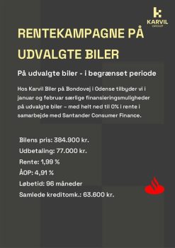 *Der tages forbehold for fejl, mangler og prisændringer og gør opmærksom på, at bilerne kan blive solgt i mellemtiden. Specifikationer er angivet for bilen generelt og ikke for den specifikke bil.