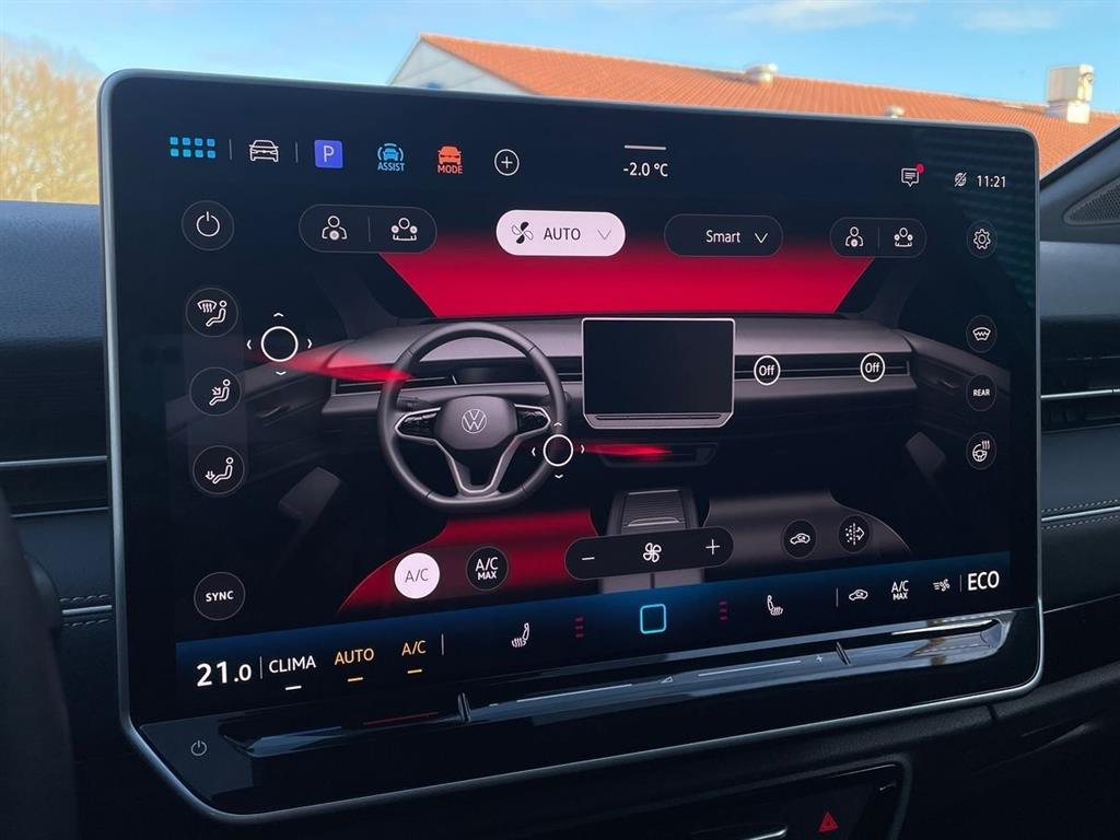 Ud over det omfattende udstyr, leverer denne VW ID.7 en jævn køreoplevelse med automatisk op-/nedblænding, elektrisk bagklap, og rat med varme.