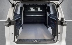 VW ID.Buzz Cargo er drevet af et 79 kWh batteri, der sikrer en rækkevidde på op til 415 km. Med en opladningskapacitet på 185 kW kan du hurtigt nå fuld batterikapacitet, hvilket reducerer ventetiden ved ladestationer. Tophastigheden på 160 km/t gør den velegnet til både bykørsel og længere ture.